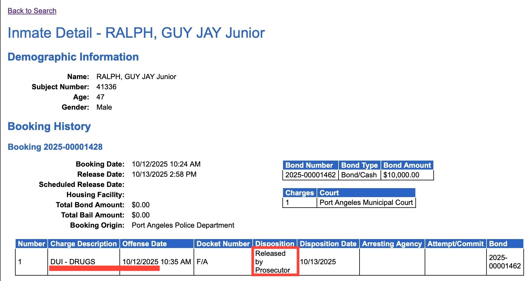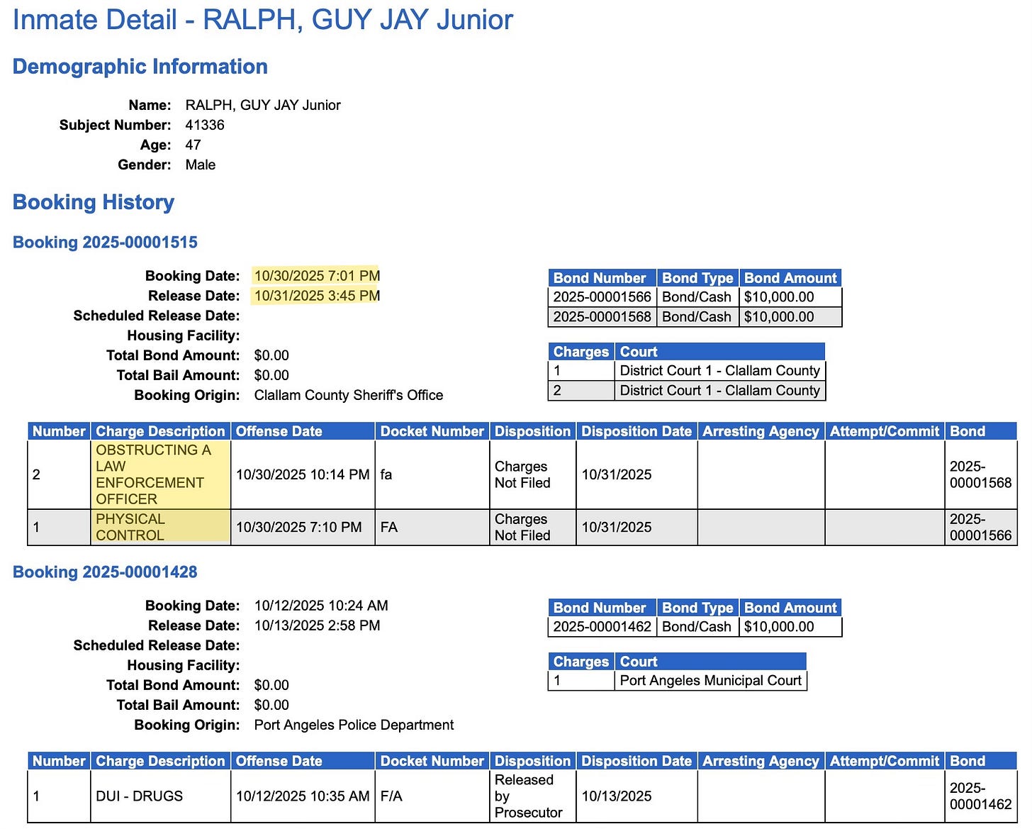 Also this week, Guy Jay Ralph Jr. — a convicted sex offender with a long record in Oregon and Washington — was again arrested in Port Angeles.