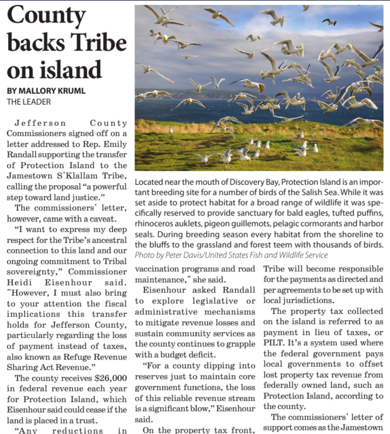 In a move that’s becoming all too familiar, the Port Townsend Leader reports that Jefferson County Commissioners signed off on a letter supporting the transfer of Protection Island to the Jamestown S’Klallam Tribe—calling it a “powerful step toward land justice.” That sounds nice. Until you read the rest.