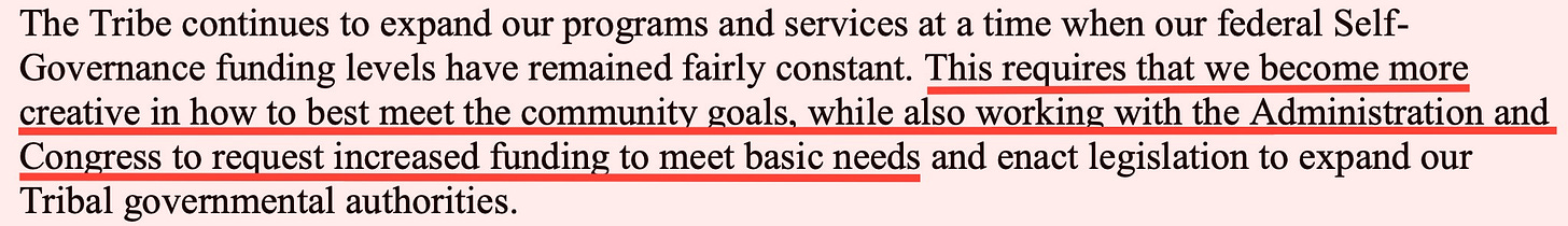The Tribe will continue working with Congress to request increased funding.