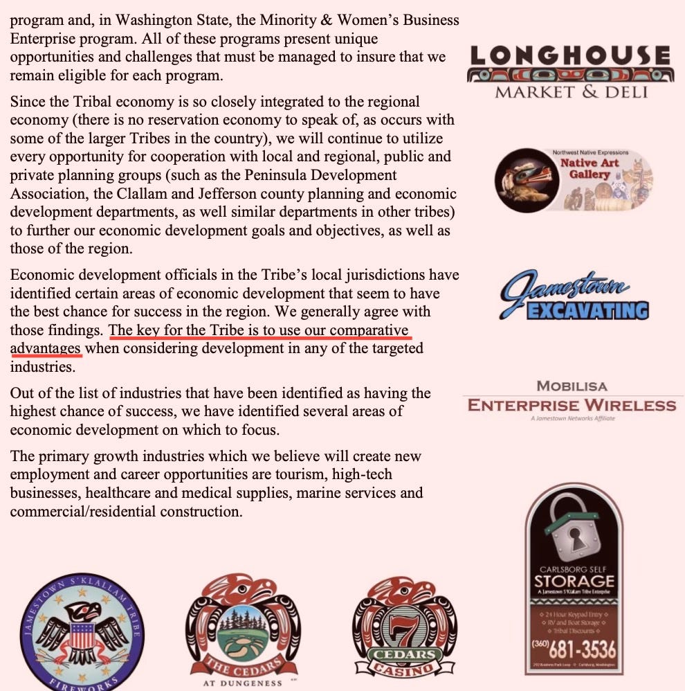The Tribe identifies its “comparative advantages” as a sovereign nation and targets key industries: