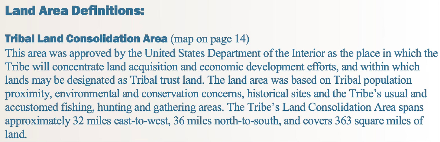 One of the most revealing elements of the plan is the Tribal Land Consolidation Area.