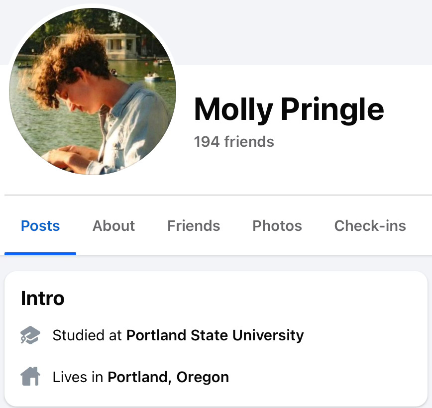 According to Facebook, Pringle is a resident of Portland, Oregon.