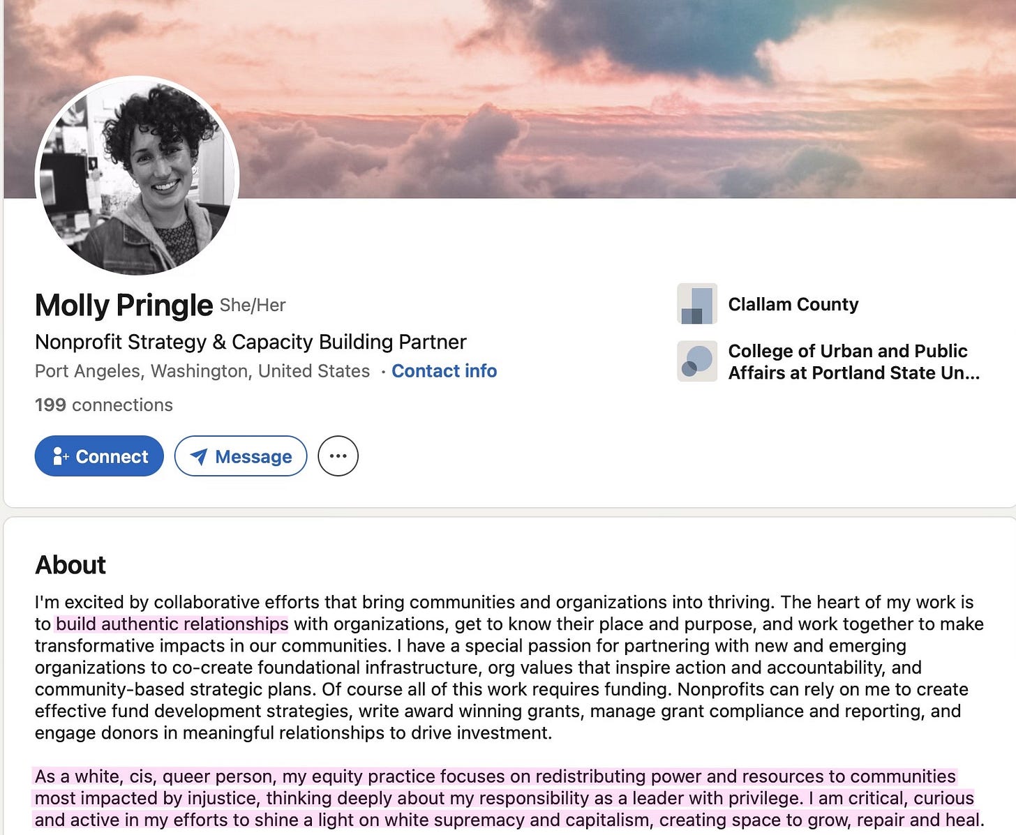 Her background is rooted in nonprofit grant writing and equity-focused organizational work.