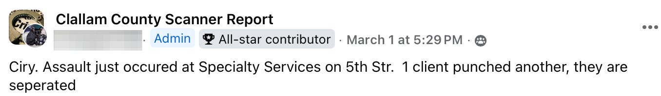 A Week on the Scanner in Clallam County