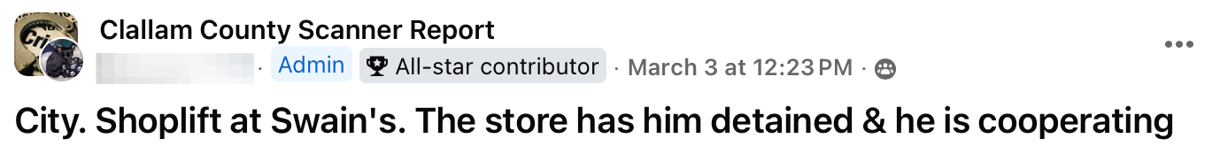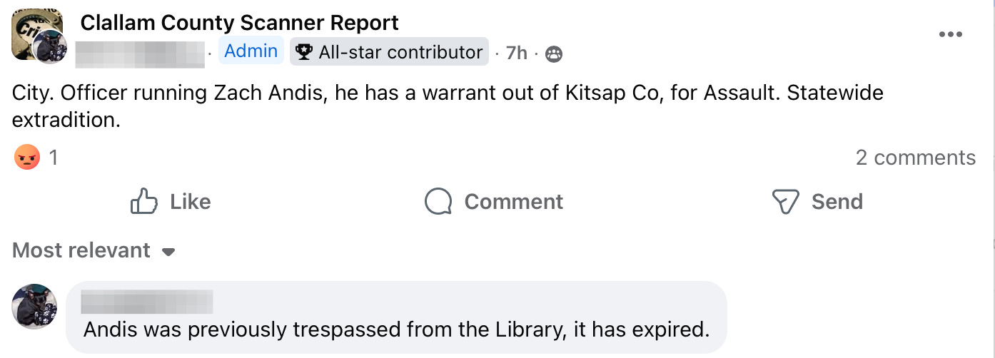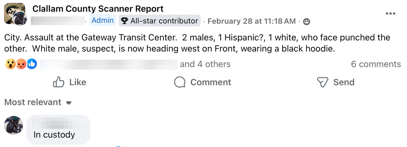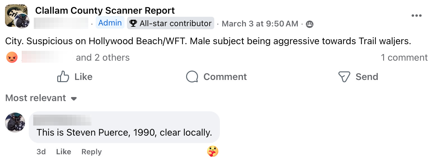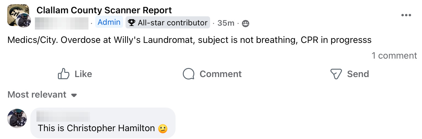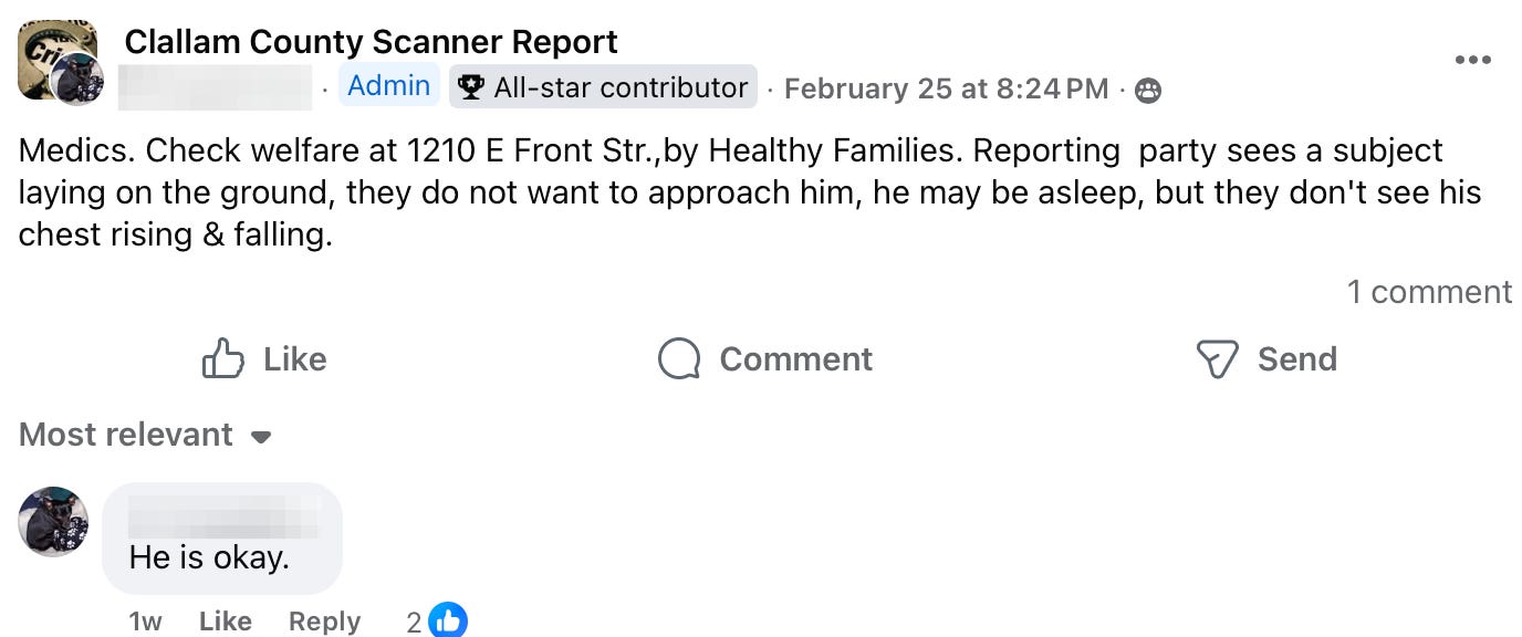 Each week, residents following local police scanner pages and neighborhood groups piece together a picture of daily life that rarely makes the headlines. This week’s Social Media Saturday reads like a familiar script: overdoses and unresponsive people, out-of-county warrants, psychotic episodes unfolding in public spaces, shoplifting calls, prowlers reported in neighborhoods, a fire in a public park, assaults at a bus stop, and even a car chase. For many residents, these reports are no longer surprising — they’re simply the background noise of life in Clallam County.