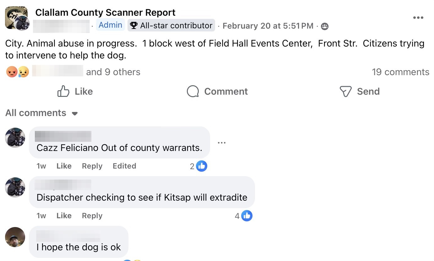 Last month, Cazz Feliciano was reportedly heard on the scanner abusing a dog while citizens tried to intervene.