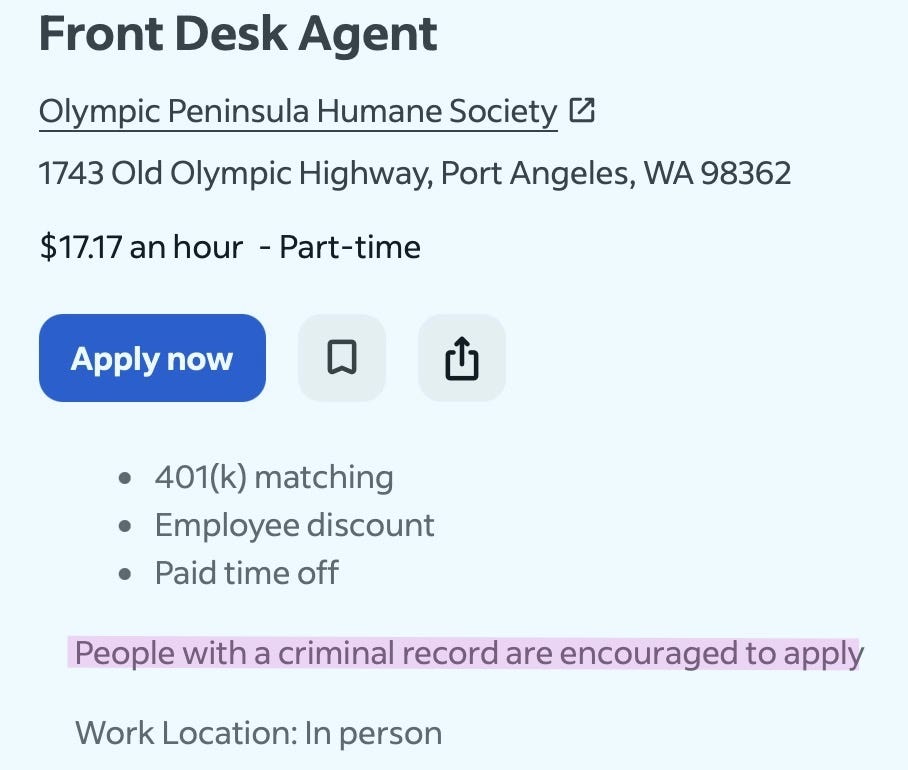 The job listing also notes that “People with a criminal record are encouraged to apply.”