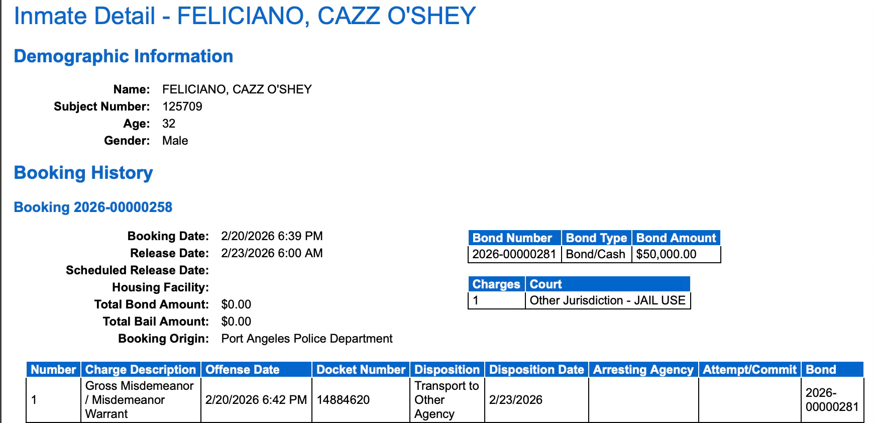 In 2023, he and another suspect were arrested near Spokane for allegedly burglarizing an evacuated home during a wildfire evacuation. Deputies reported suspicious behavior and missing property.