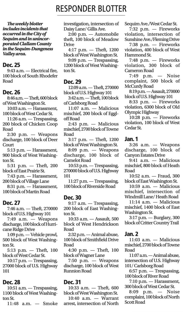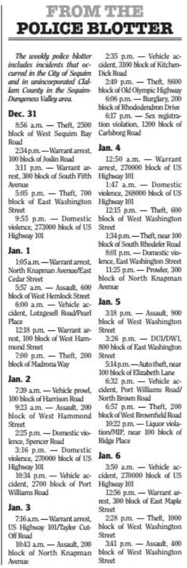 Five years ago this week, the Sequim Gazette police blotter listed 35 incidents for the entire week.