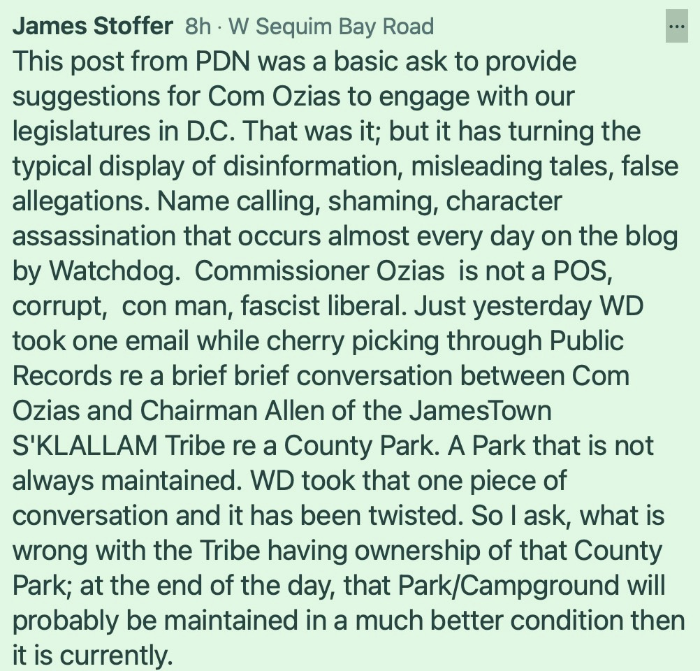 Former Charter Review Commissioner Jim Stoffer stepped in to defend Commissioner Ozias, calling the criticism from CC Watchdog “disinformation,” “false allegations,” and “character assassination.” He even suggested that handing over a county park to the Jamestown Corporation would be beneficial because it would “probably be maintained in much better condition.”