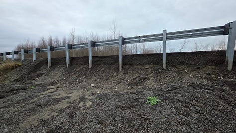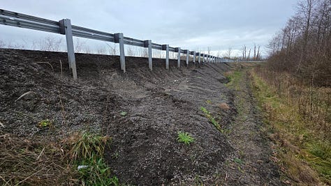Local resident Mitch Zenobi documented erosion following a recent rainstorm, posting video of washed-out gravel and sand exposing guardrail footings and beginning to undercut the raised roadbed.