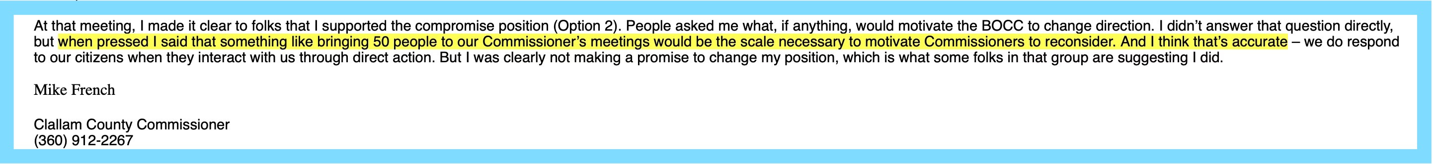 In an email, French admitted that he had indeed floated “50 people” as the threshold to motivate commissioners to reconsider. Translation: policy by headcount, not principle.