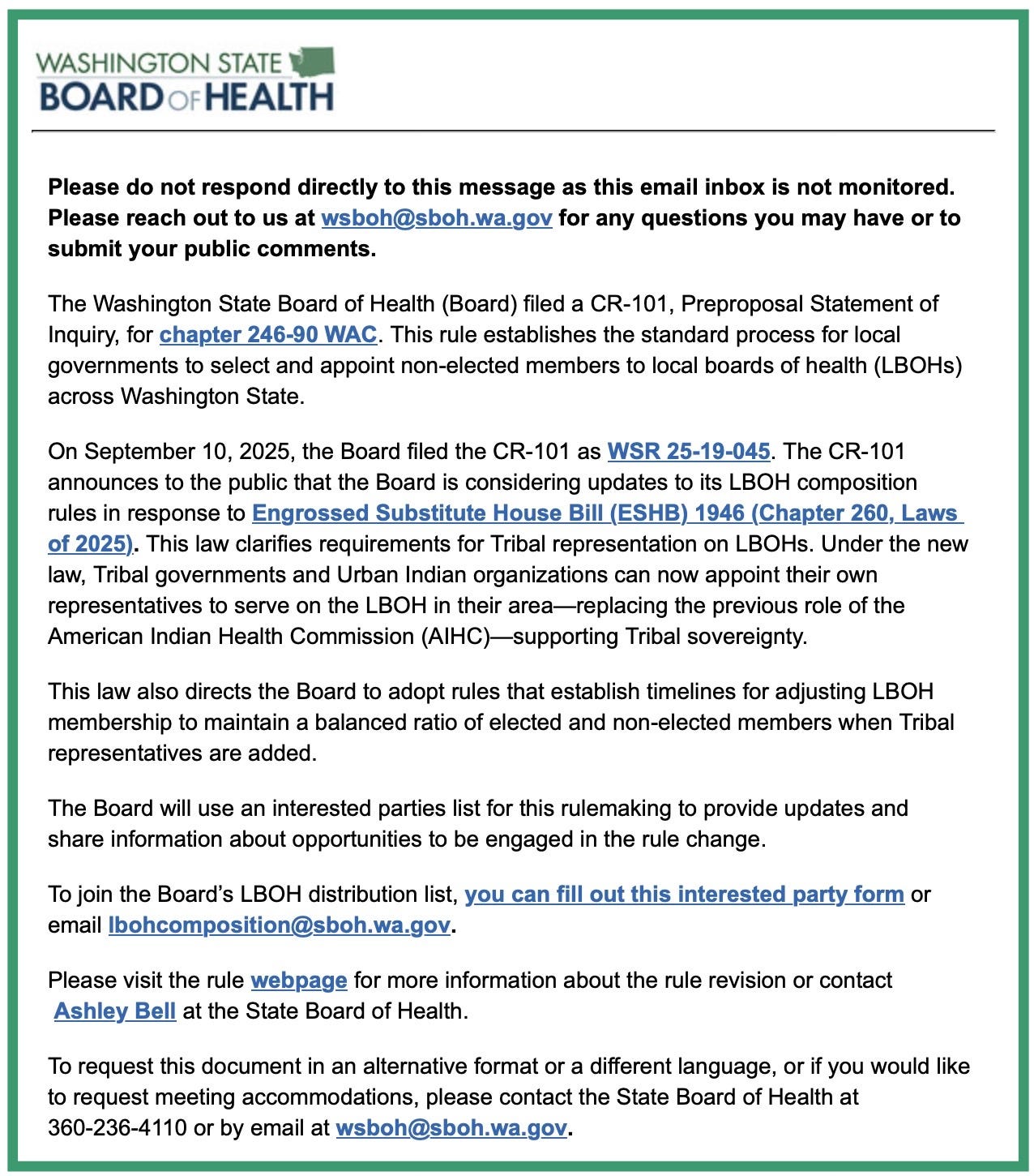 The Washington State Board of Health just filed a proposal that could permanently change who sits on county boards of health. Under a new law, tribes and urban Indian organizations could now appoint their own representatives directly, replacing the American Indian Health Commission’s role.