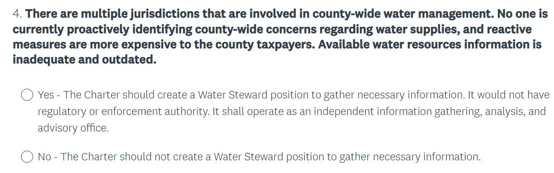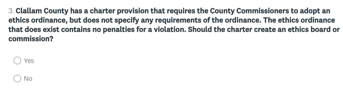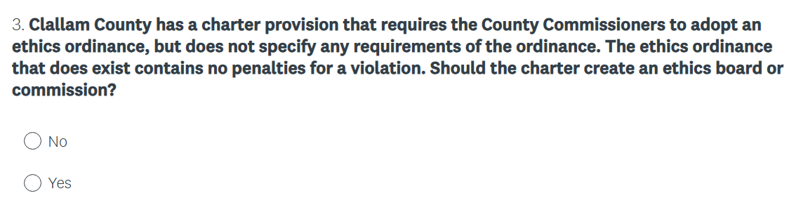 The recent Charter Review Commission survey (now closed) has come under scrutiny for changes made during its active period. Notably, the positioning of response options for the ethics board question was altered, indicating manipulation while the survey was live. First, “No” was on top.