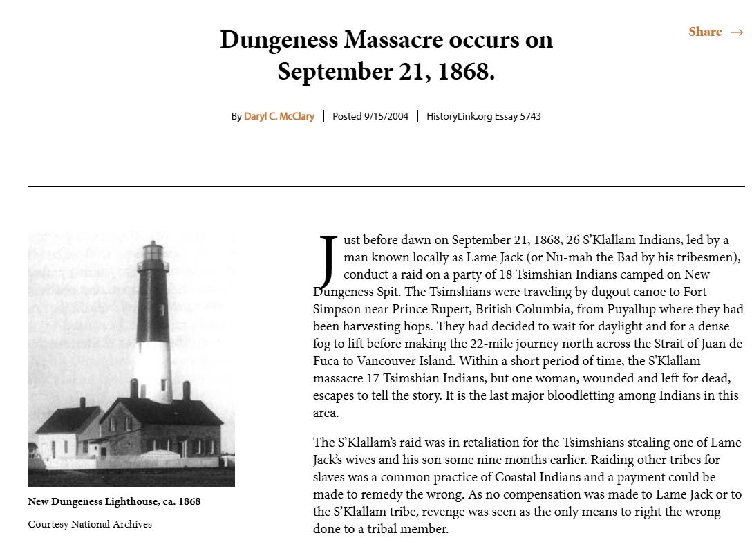 The Jamestown Tribe's cultural sensitivity training for the Sequim School Board has been criticized for omitting significant historical events. Notably absent is the Dungeness Massacre of 1868, where S’Klallam Indians killed 17 Tsimshian individuals in retaliation for a prior offense.