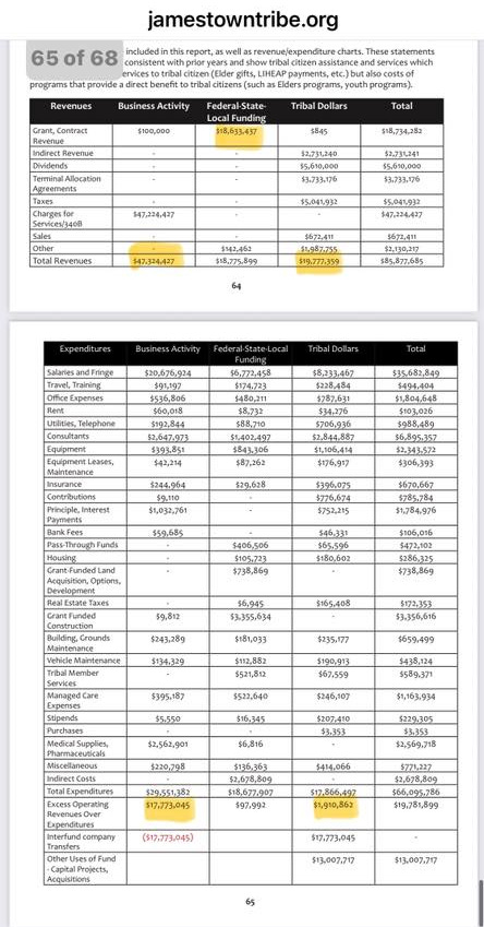 The Jamestown Tribe's annual report indicates nearly $86 million in revenue for a community with 209 local residents, sparking discussion on Facebook.
