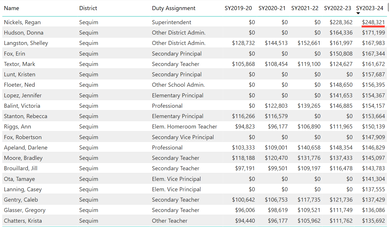 The Sequim School District Superintendent makes nearly a quarter of a million dollars annually—perhaps performance isn’t tied to salaries.