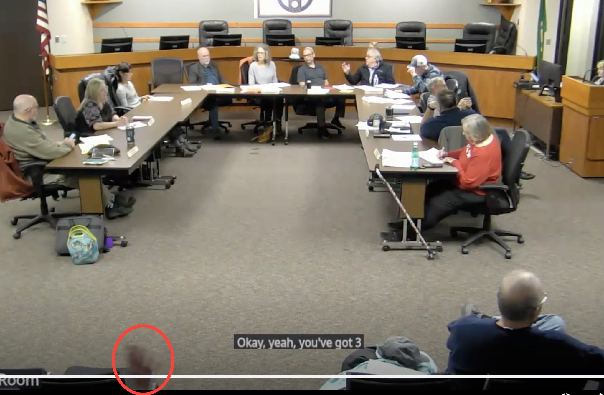 During that period, public commenter Brian Grad turned away from the public comment podium and addressed the audience directly—accusing the gallery of “throwing stones and sticks” at Stoffer and urging them to engage in dialogue “so we can get on with our lives.”