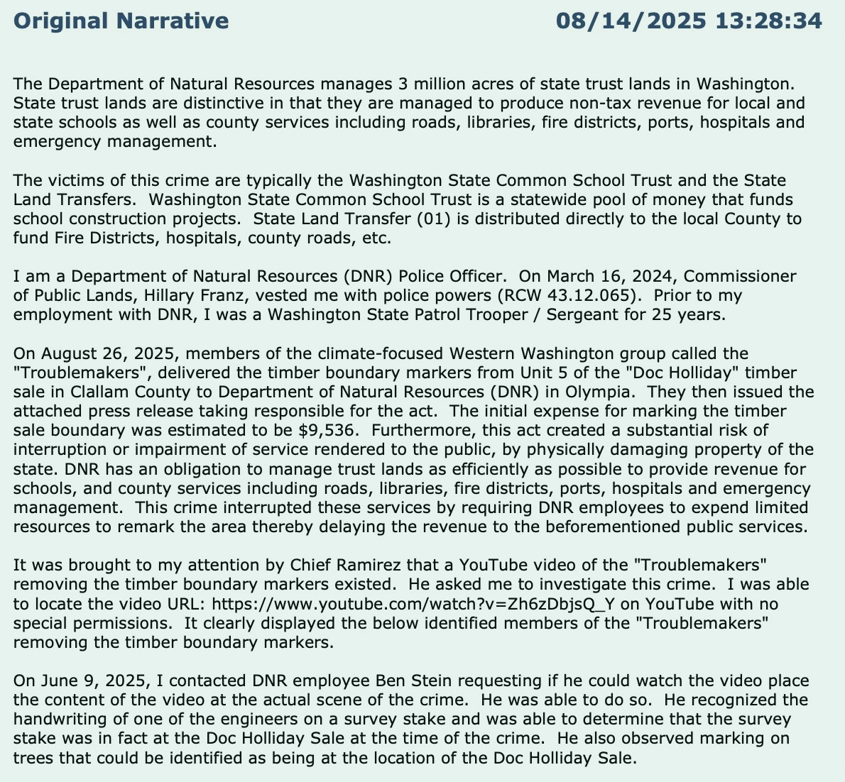 A group of self-described activists—calling themselves the “Troublemakers”—walked onto Department of Natural Resources (DNR) land in Clallam County, tore down boundary markers, filmed themselves doing it, identified themselves on camera, and then hand-delivered the evidence to the state.