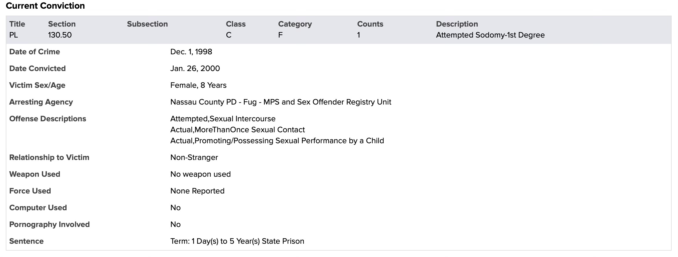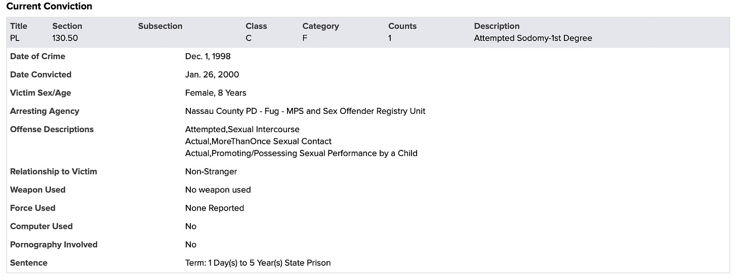 Based on that conviction, New York classified him as a Level 3 sex offender—the highest risk category, reserved for individuals considered most likely to reoffend.
