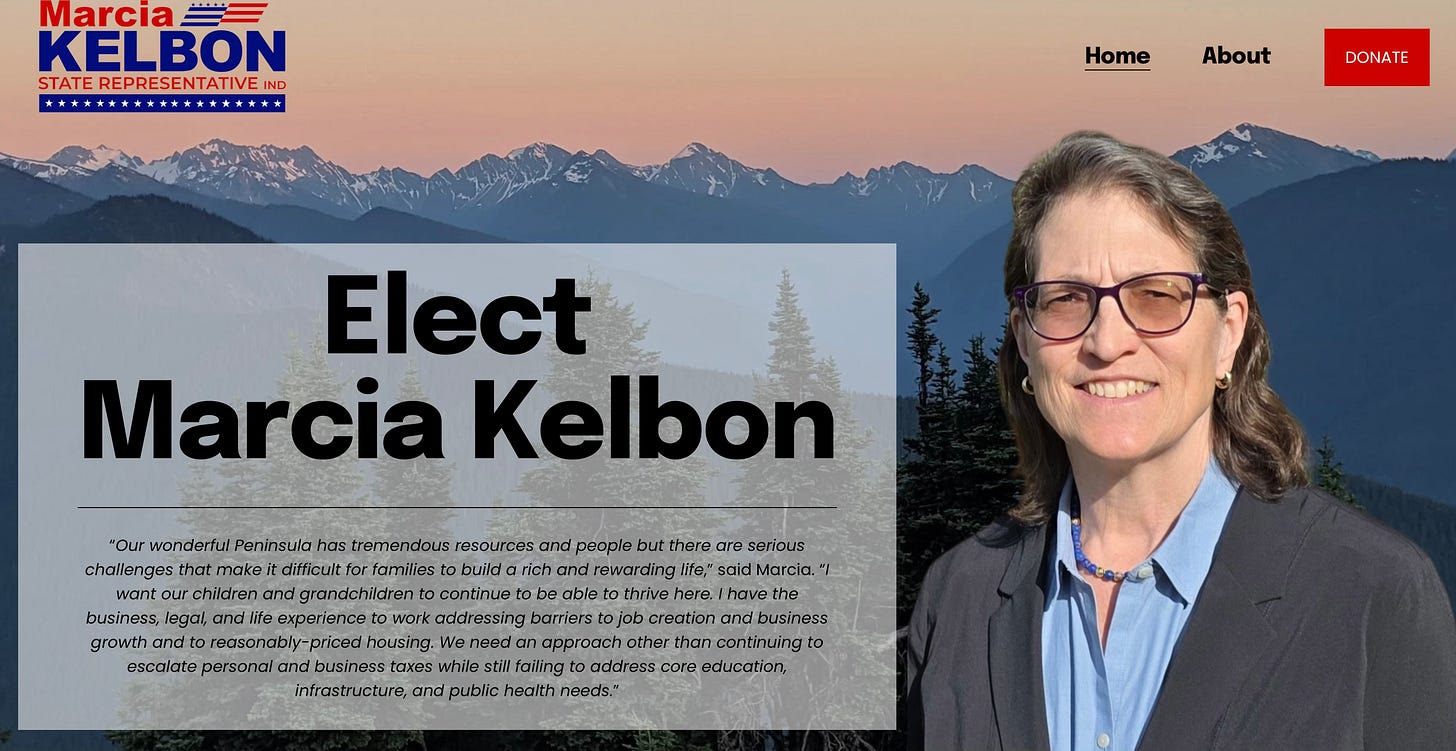 You’ll have a chance to meet Marcia Kelbon. She’s running as an Independent for the 24th Legislative District following Steve Tharinger’s retirement.