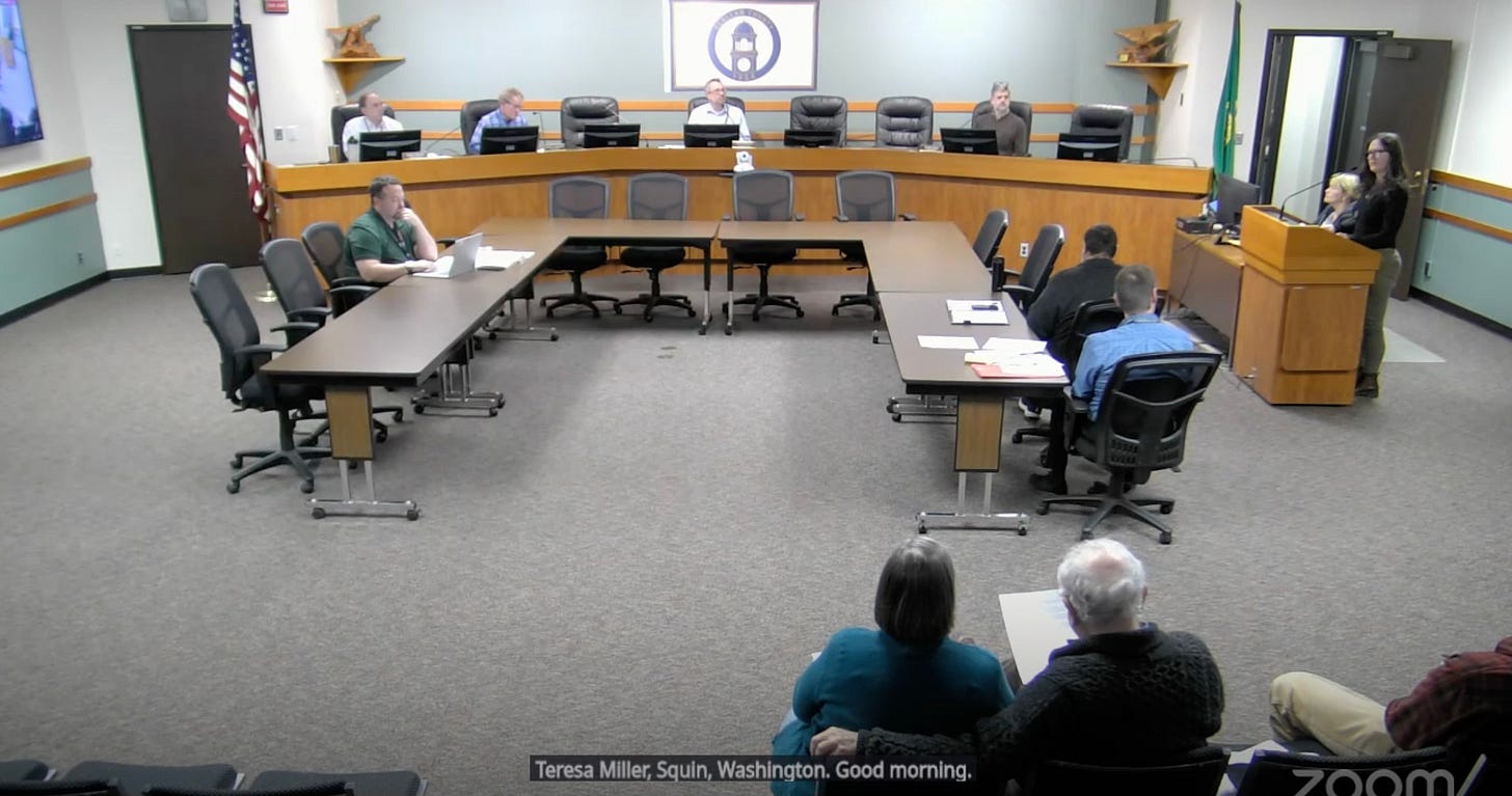 At a recent county commissioner meeting, there was a moment that said more than any speech or public comment ever could. Tim Wheeler—an out and proud communist, longtime activist, and co-founder of the Sequim Good Governance League—sat with his arm around Ellen Menshew, Chair of the Clallam County Democrats.