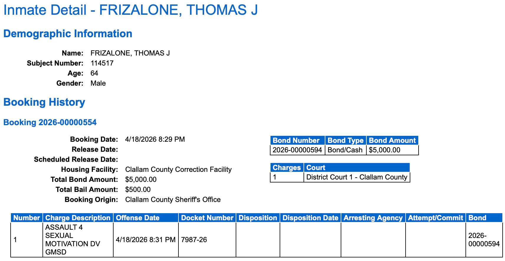 Despite being listed as a Level 3 offender in New York—with a Sequim address—Frizalone does not appear on Washington’s public sex offender registry in Clallam County, where individuals of this risk level are typically expected to be visible and monitored.