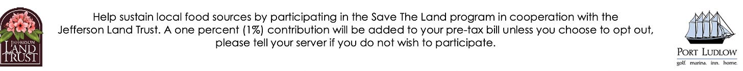 In Jefferson County, diners at the Inn at Port Ludlow are automatically opted into a 1% contribution for land preservation through Jefferson Land Trust.