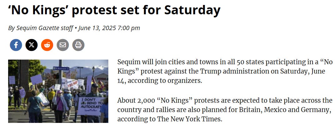CC Watchdog did not criticize the Indivisible Sequim organizers for hosting a protest. The group did things by the book—filing a permit, organizing peacefully, and exercising their First Amendment rights with civility. From all accounts, the rally was peaceful and well-attended. Well done and thank you.