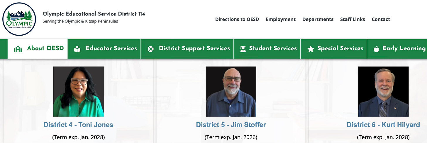 Also notable is that Jim Stoffer—the only Charter Review Commissioner to request and receive private taxpayer-funded security, and a former Sequim School Board director who resigned amid controversy—sits on OESD’s Board of Directors.