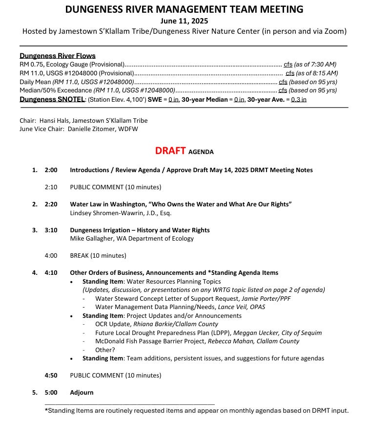 The meeting takes place tomorrow, Wednesday, June 11, 2:00 PM, at the Dungeness River Nature Center in Sequim, which sits on sovereign tribal land. You can attend in person or via Zoom (contact shines@jamestowntribe.org for Zoom link).