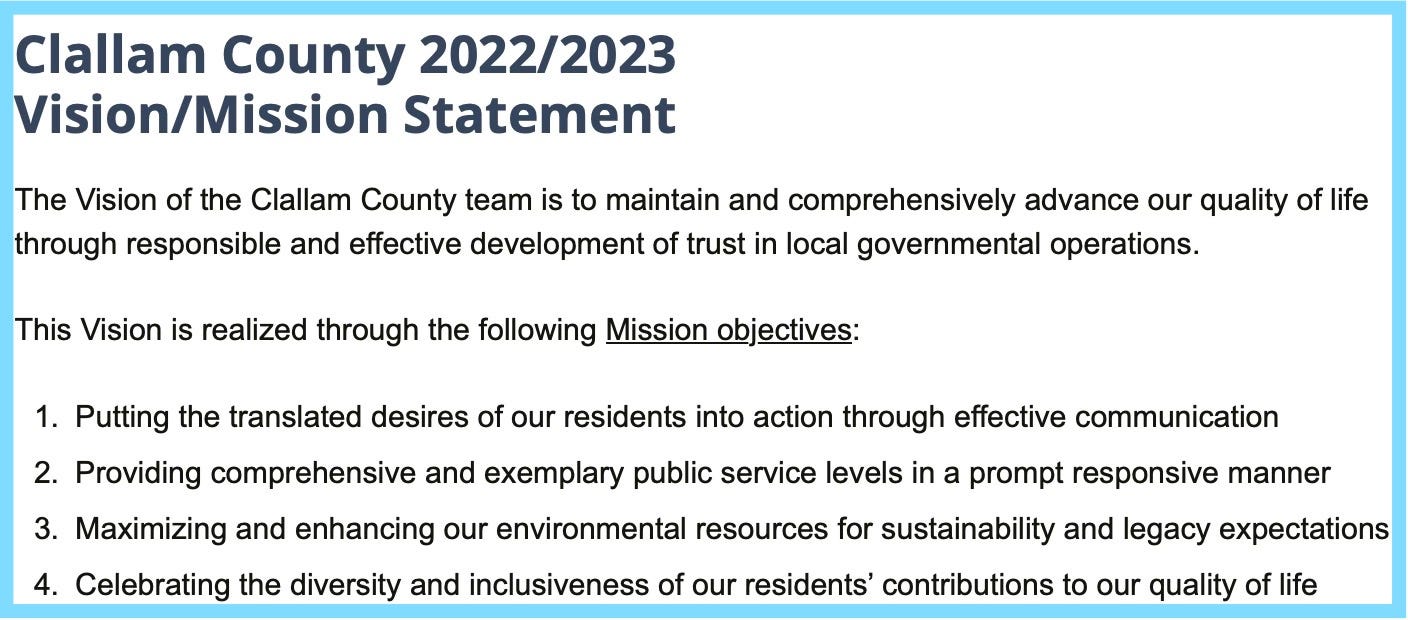 Clallam County’s elected leaders publish a set of clear, admirable mission objectives. They commit to translating residents’ priorities into action through effective communication, providing prompt and exemplary service, protecting environmental resources, and celebrating diversity and inclusion. Those goals set a high bar — and that’s the point. Equity isn’t a slogan here; it’s supposed to be a framework for who gets heard, who gets helped, and how fairly public resources are applied.