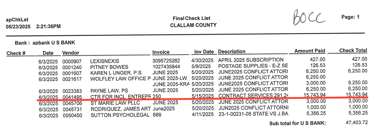 This week’s county checkbook reveals $15,743.94 headed to the “Center for Inclusive Entrepreneurship”—a group that’s drawn criticism for helping everyone except straight white males.