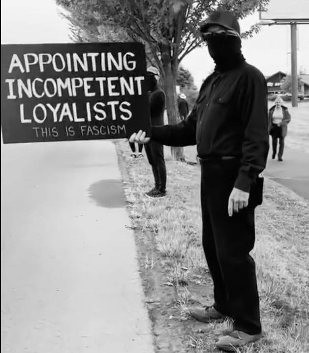 Some things are easier to spot when written on a sign than when woven into policy. Recently, a group of masked citizens stood on Washington Street in Sequim—between the Costco roundabout and Walmart—holding signs that spelled out what fascism looks like. They didn’t need speeches or shouting. Just words on cardboard.