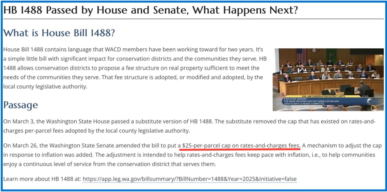 For now, CCD promises to keep the parcel fee flat at $5 for ten years. But, under Washington House Bill 1488, that fee could climb to $25 per parcel with commissioner approval.