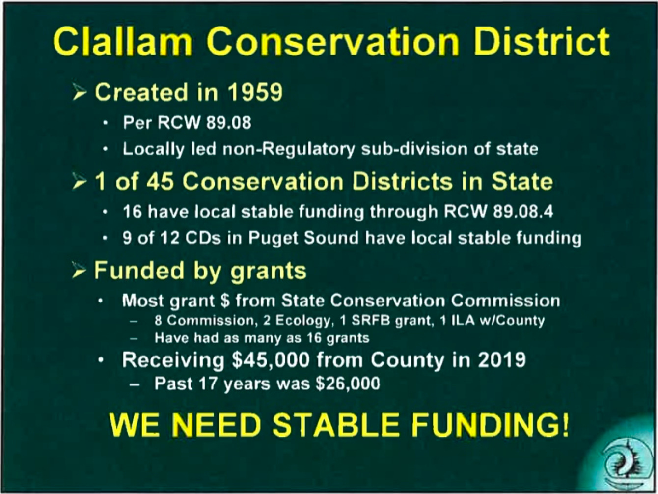 “Stable funding” for the Clallam Conservation District is a “want.” Fortunately, it is optional, giving commissioners flexibility to remove it from the county’s overburdened budget. Unfortunately, the commissioners have the power to turn this discretionary spending into a long-term taxpayer obligation.