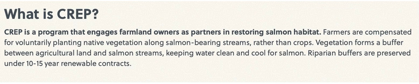 The few homeowners who do qualify for septic assistance are responsible for 25% of the cost. But, this can be covered by the Conservation Reserve Enhancement Program (CREP), another salmon-centric grant.