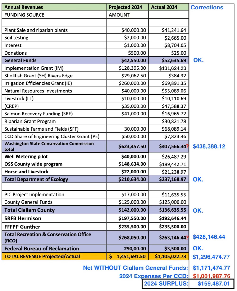 Based on CCD’s Accomplishments Report, the district generated a 2024 SURPLUS of $169,487, NOT counting a $125,000 contribution from the county’s general fund. Projections indicate a similar surplus in 2025.