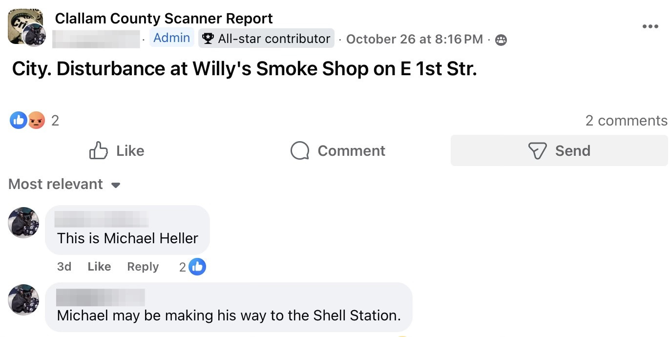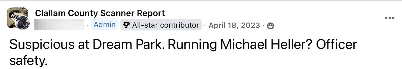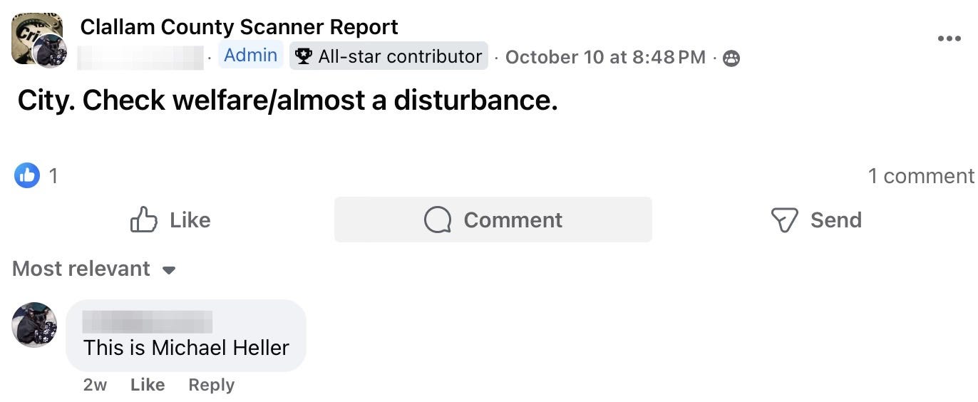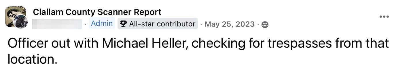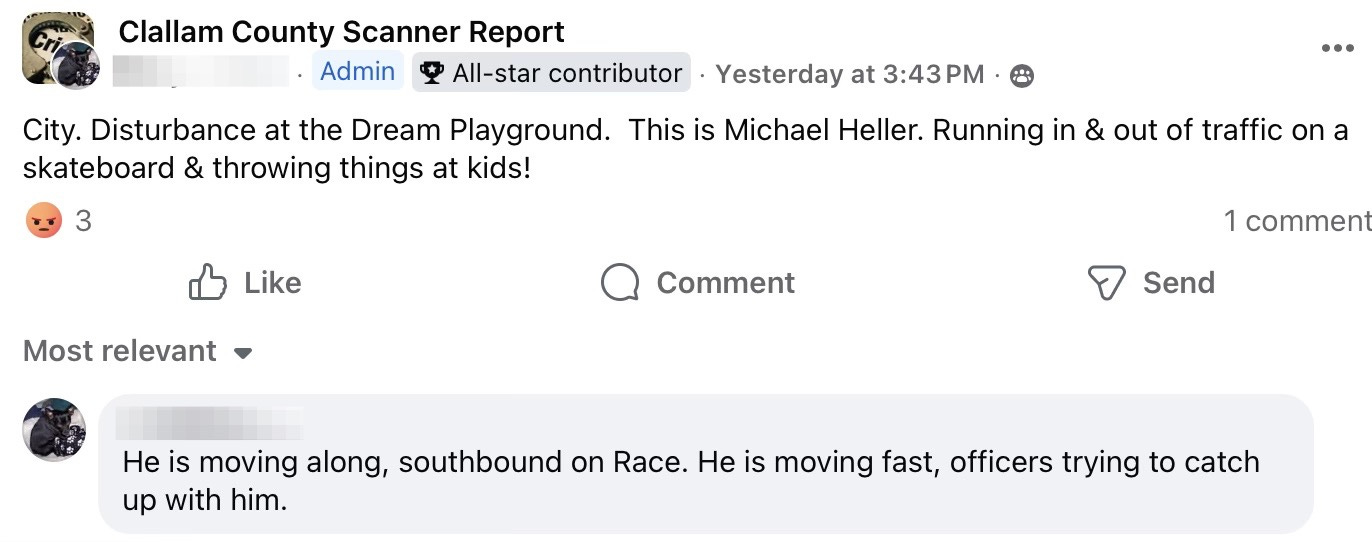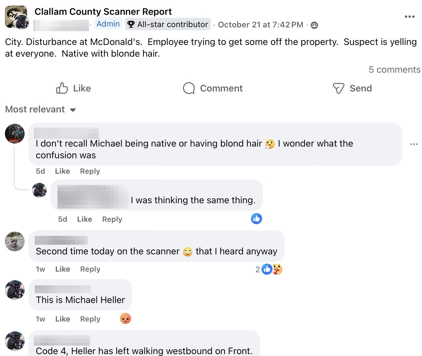 It’s been more than five years since Michael Heller first appeared in the local news for allegedly setting fires in Sequim and assaulting police officers. At the time, a judge ordered a competency evaluation. Since then, Heller’s name has surfaced repeatedly—on the police scanner, in Facebook community alerts, and in countless reports of disturbances across Port Angeles and Sequim.