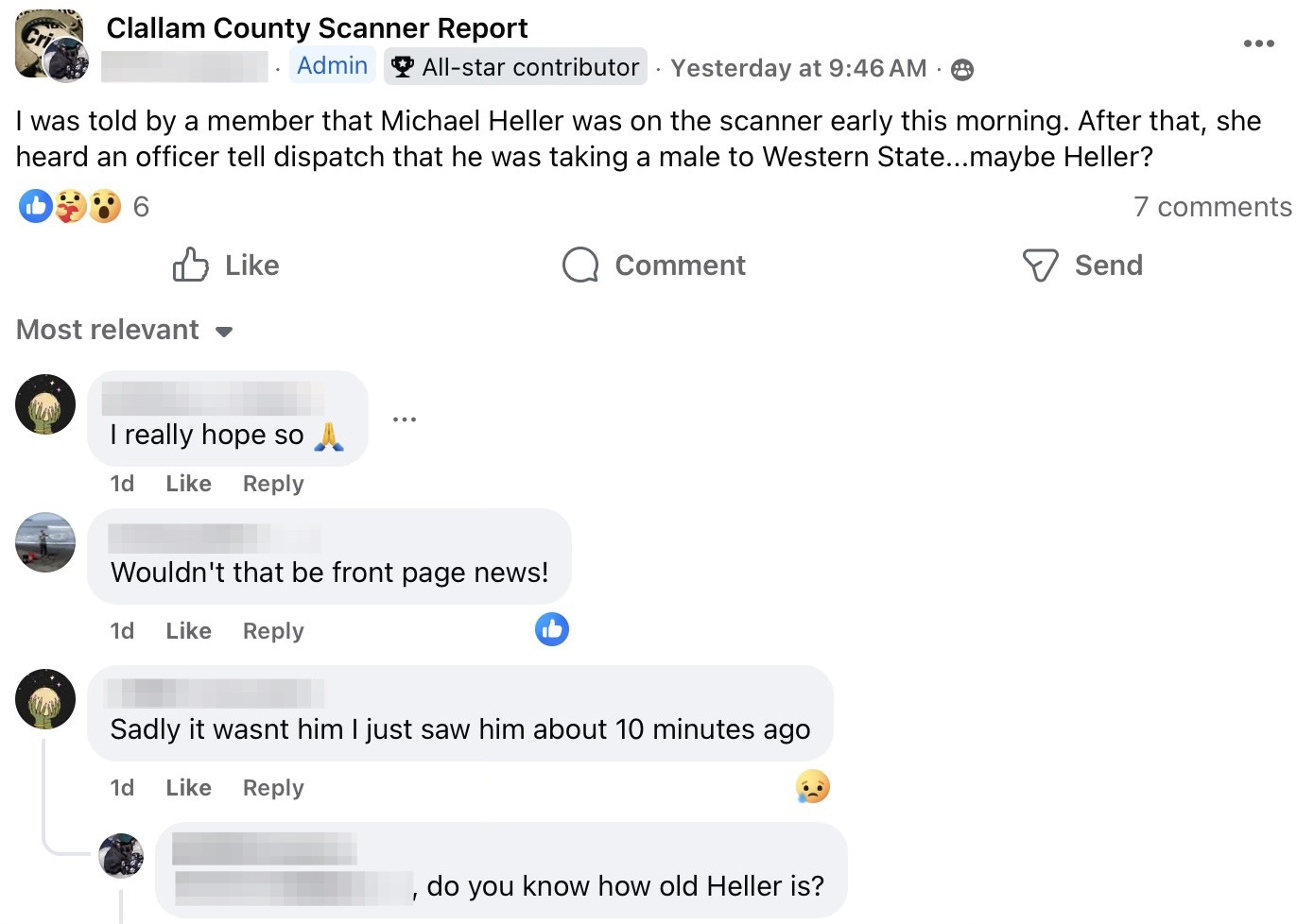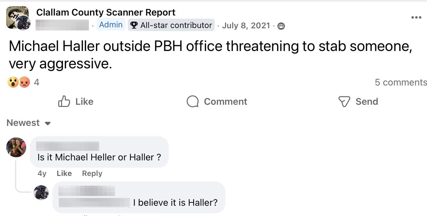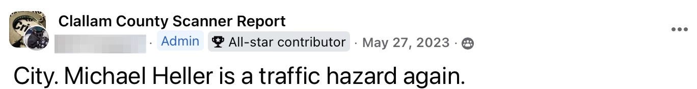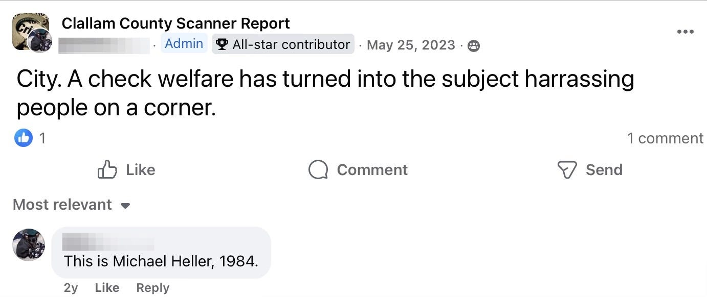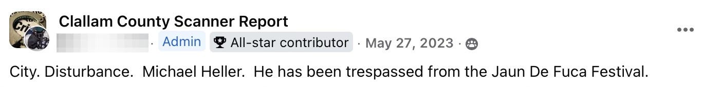 It’s been more than five years since Michael Heller first appeared in the local news for allegedly setting fires in Sequim and assaulting police officers. At the time, a judge ordered a competency evaluation. Since then, Heller’s name has surfaced repeatedly—on the police scanner, in Facebook community alerts, and in countless reports of disturbances across Port Angeles and Sequim.