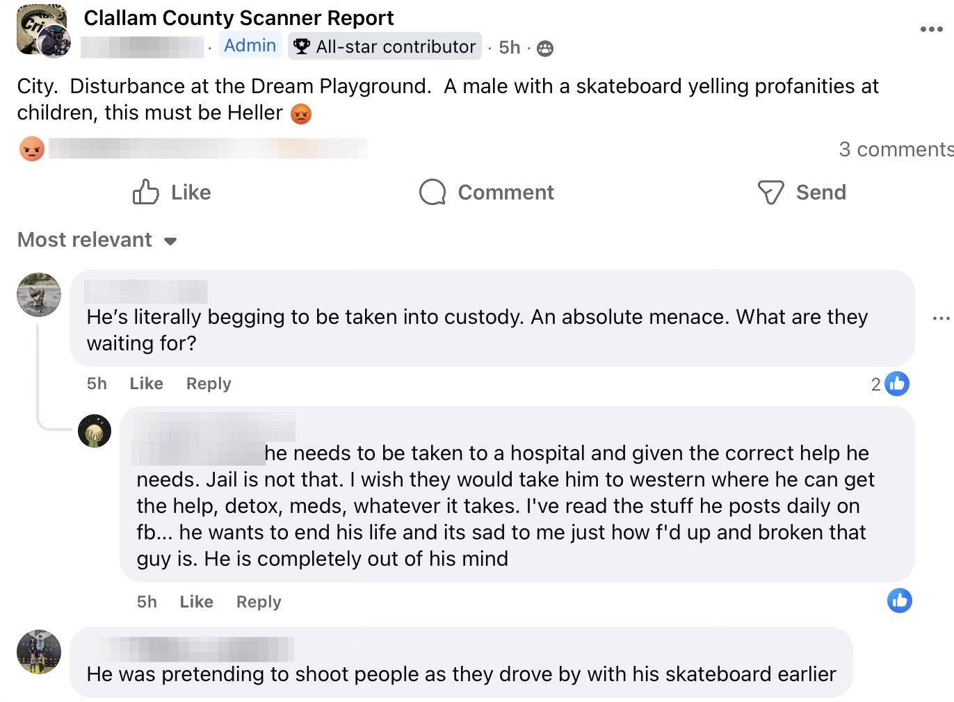 For five years, Clallam County resident Michael Heller has been a constant presence on the police scanner—disturbances, arsons, assaults, and public meltdowns. His behavior has become a fixture in community chatter, a source of fear for families, and a drain on public safety resources. With dozens of local nonprofits and behavioral health programs claiming to provide help, one has to ask: what does it actually take to get help in Clallam County—and what will it take before someone is hurt?
