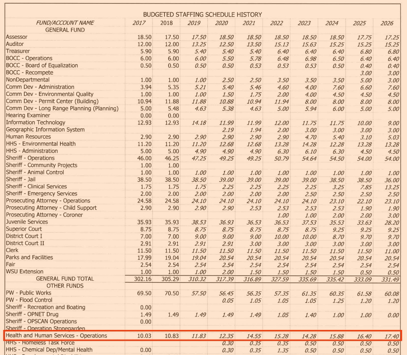 Health and Human Services has grown its staff by 74% since 2017 and added yet another full-time employee for 2026, despite losing grant support for core services.