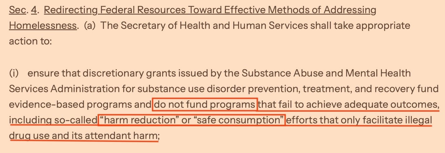 Federal agencies have recognized the long-term failure of harm reduction to reduce drug deaths. In July 2025, a sweeping federal order prohibited the Substance Abuse and Mental Health Services Administration (SAMHSA) from issuing grants to programs that “fail to achieve adequate outcomes,” explicitly targeting “harm reduction” and “safe consumption” programs.