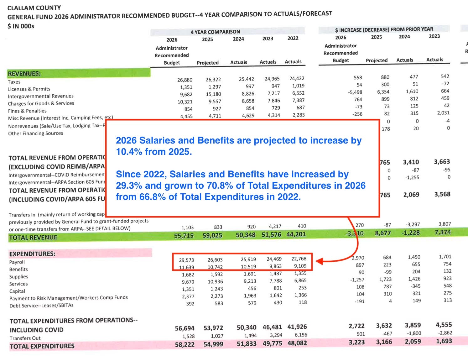 In 2026 alone, county salaries and benefits are projected to jump 10.4%, a total increase of 29.3% since 2022—double the rate of inflation.