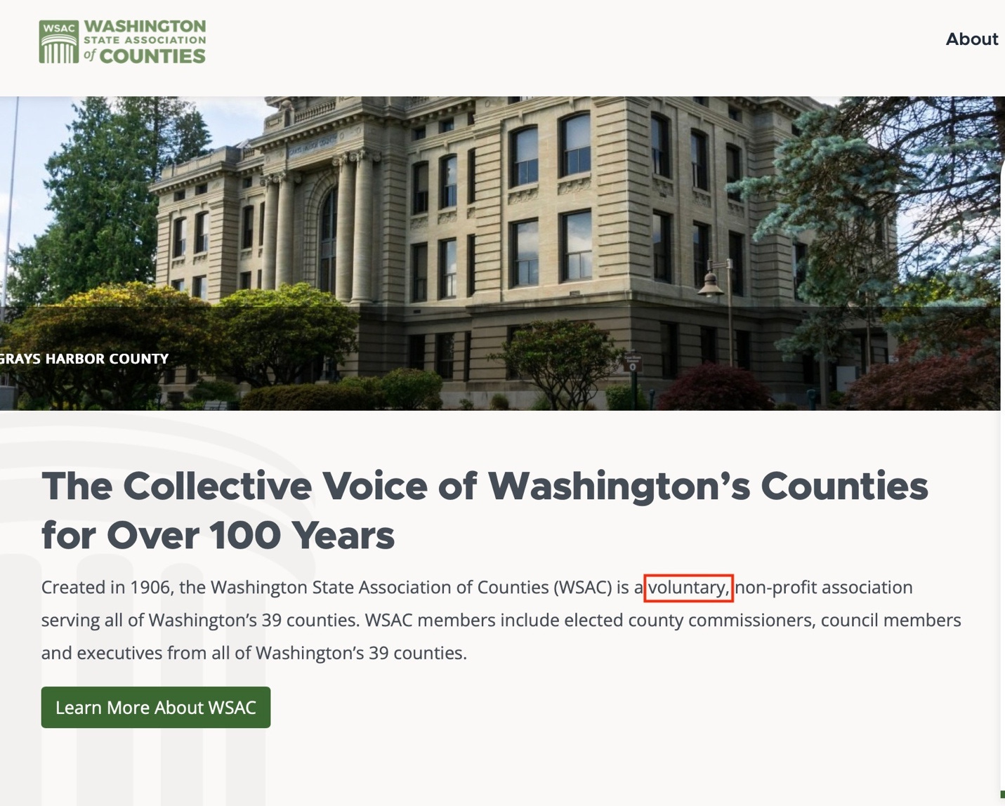 Commissioner Ozias serves as Vice President of the Washington State Association of Counties (WSAC), a nonprofit to which county membership is voluntary.