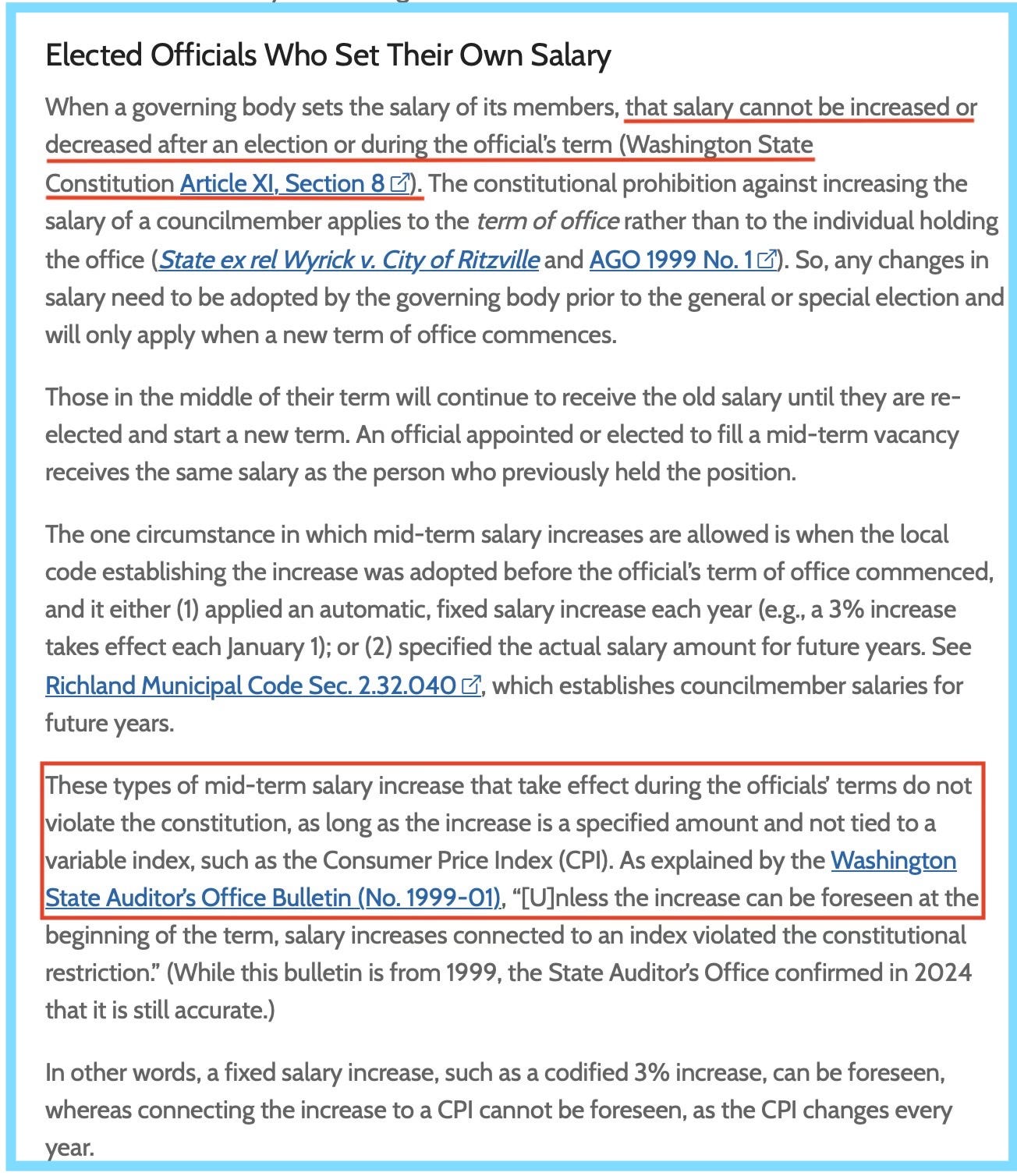 At the October 22 Budget Town Hall in Sequim, Commissioner Mike French acknowledged that elected officials could voluntarily forgo their scheduled pay increases. He added that he is exploring a proposal to lower the benchmark used to calculate future salaries but noted that Article XI, Section 8 of the Washington State Constitution prohibits changing an elected official’s pay during their current term — meaning any adjustment would not take effect until 2027.