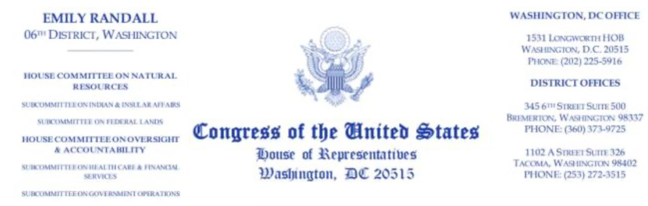 Thank you again for sharing what matters to you. If you would like to stay up to date with my work on behalf of Washington’s 6th Congressional District, connect with me on Instagram, Facebook, Bluesky, and subscribe to my newsletter. If you need help with a federal agency, such as the VA, IRS, or USCIS, my office is here to assist. Please visit this link or call my Bremerton District Office at (360) 373-9725 or my Tacoma District Office at (253) 272-3515.