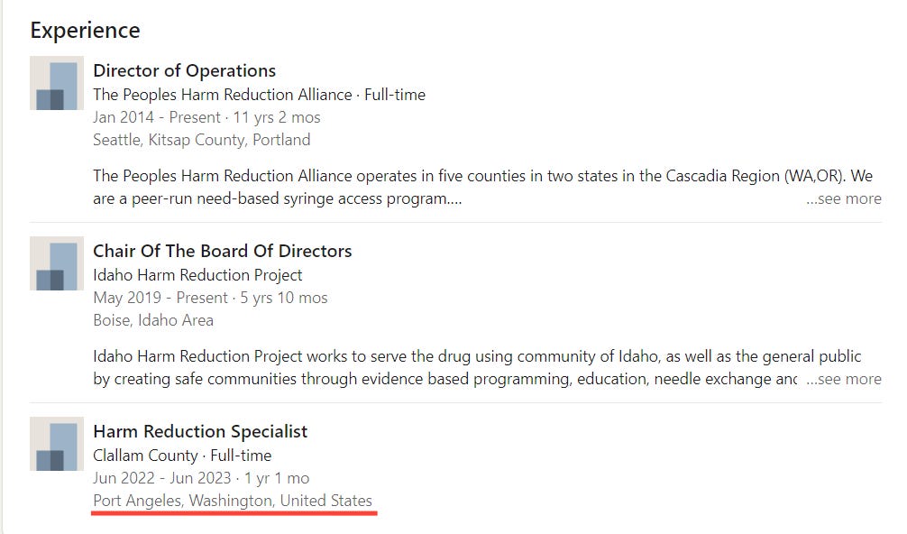 In 2022: Harm Reduction Specialist, Clallam County