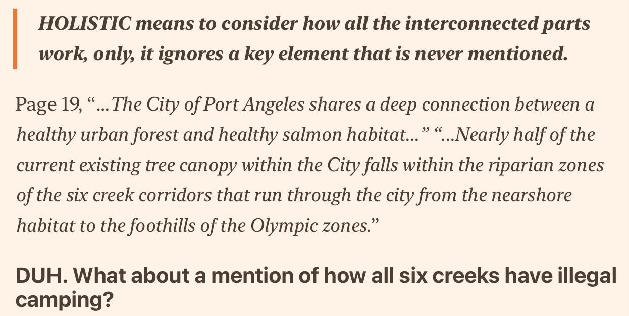 Marolee Smith’s recent Substack piece, “Urban Forestry Grant on PA City Agenda,” examines a Department of Commerce grant headed to Port Angeles to expand its Urban Forestry Program — with heavy emphasis on salmon habitat, canopy health, and ecosystem planning.
