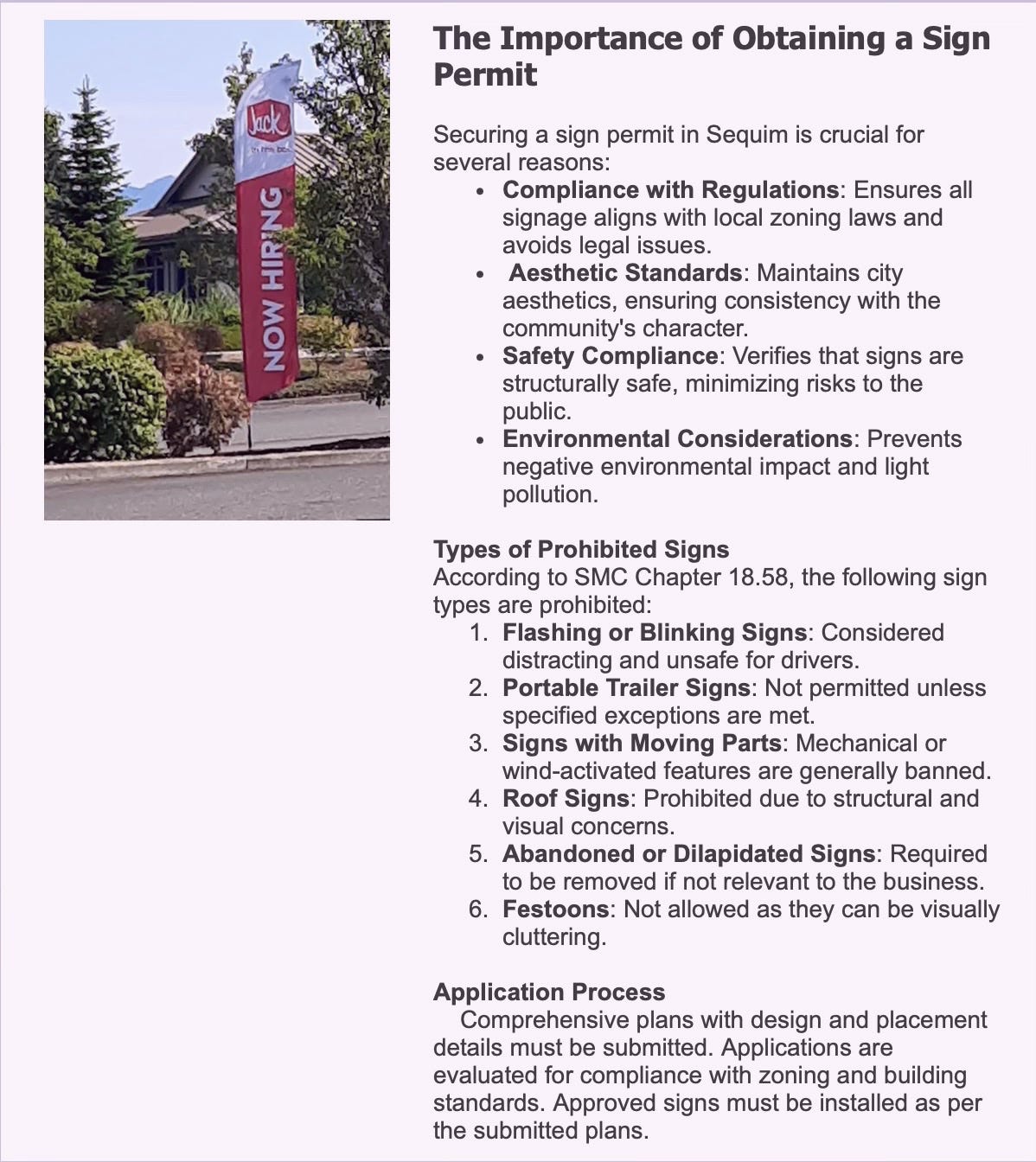 The City of Sequim is reminding residents why sign permits are essential: aesthetics, safety, environmental protection, and community character.